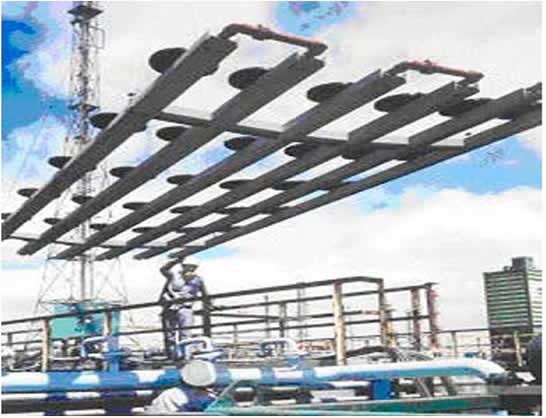 Para lograr que el módulo quede correctamente posicionado en el fondo, las cañerías plásticas se montan sobre una estructura metálica que le da rigidez y el peso suficiente para que el modulo quede en el fondo.